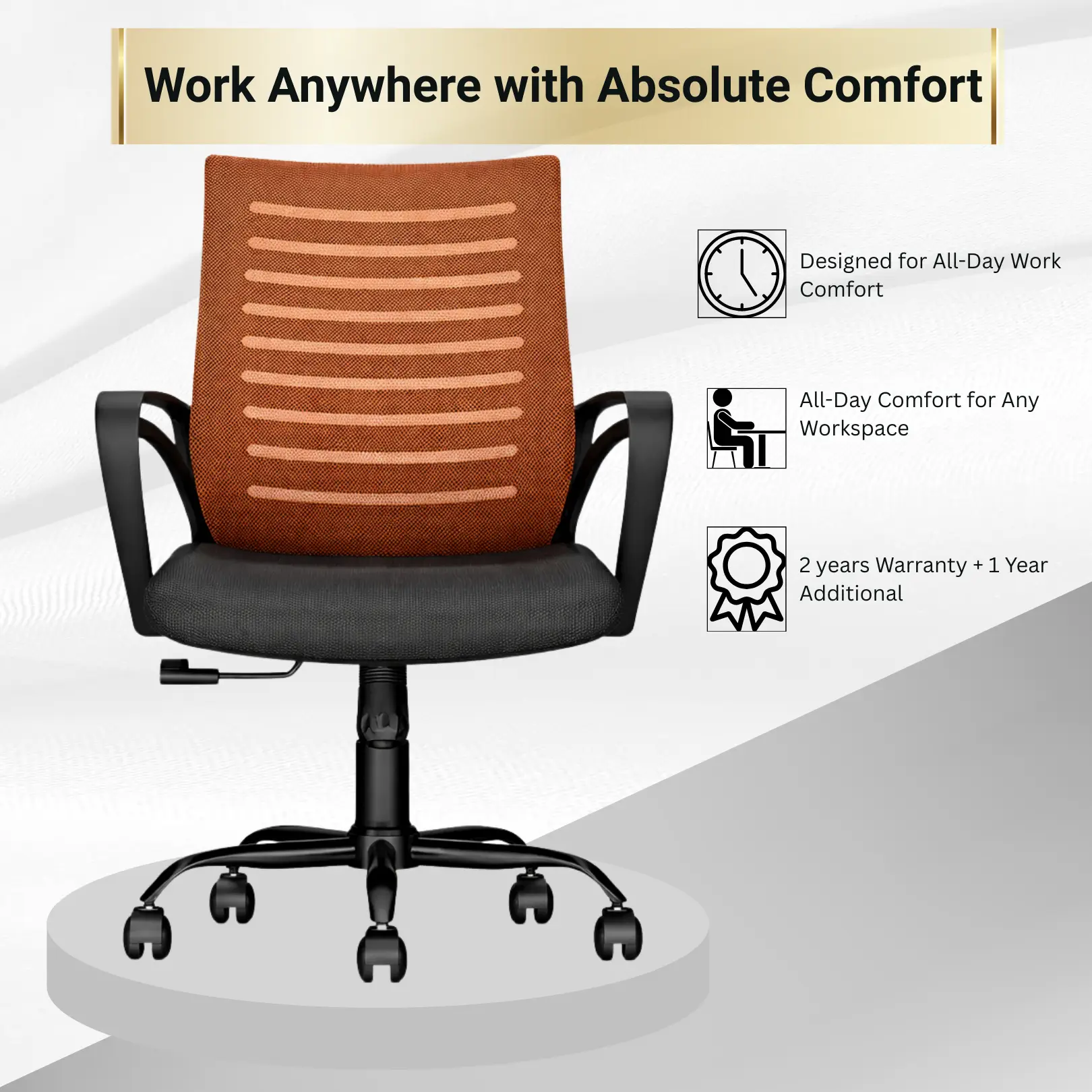 Height Adjustment Mechanism – Easily adjust seating height as per desk level